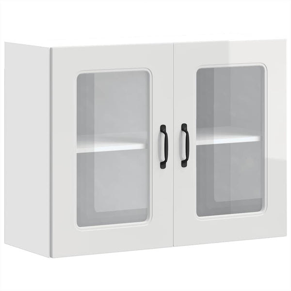 Valkoinen keittiön seinäkaappi lasiovella kalmar kiiltävä