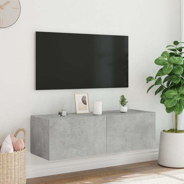 Betoninharmaa tv-seinäkaappi 100x35x31cm led-valoilla