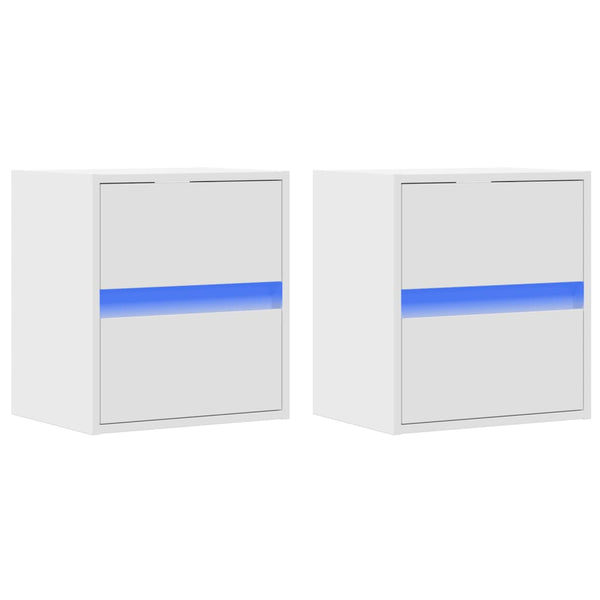 Valkoinen seinäkiinnitettävät yöpöydät led-valoilla 2 kpl