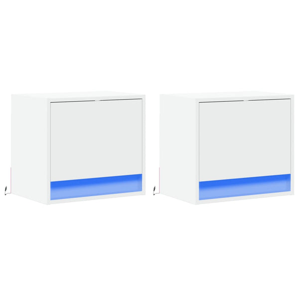 Valkoinen seinäkiinnitettävät yöpöydät led-valoilla 2 kpl