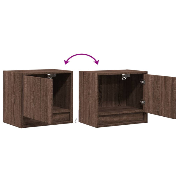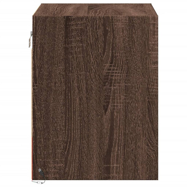 Ruskea seinäkiinnitettävä yöpöytä led-valoilla tammi