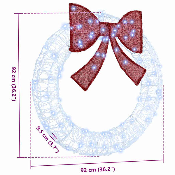 Tämä upea kranssi on tehty laadukkaasta akryylistä ja se kuvastaa modernia muotoilua. Se yhdistää yksinkertaisuuden ja juhlallisuuden, ja toimii hienona katseenvangitsijana joulusisustuksessa. Tyylikkään rusetin ansiosta se sopii täydellisesti mihin tahansa jouluteemaan.