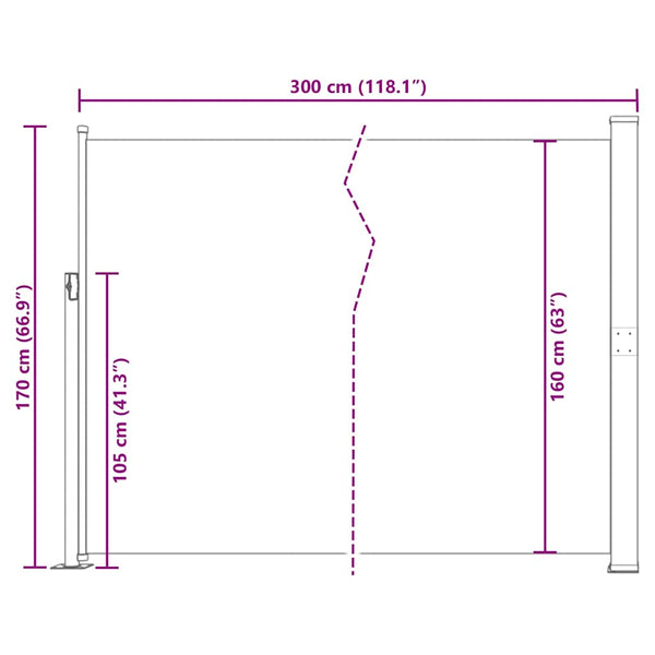 Tämä yksinkertainen mutta tyylikäs sivumarkiisi luo viihtyisän pikku nurkan samalla tarjoten yksityisyyttä, jota tarvitset terassilla, patiolla tai parvekkeella. Se myös auttaa suojelemaan ihmisiä tuulelta ja matalalla olevalta auringolta.