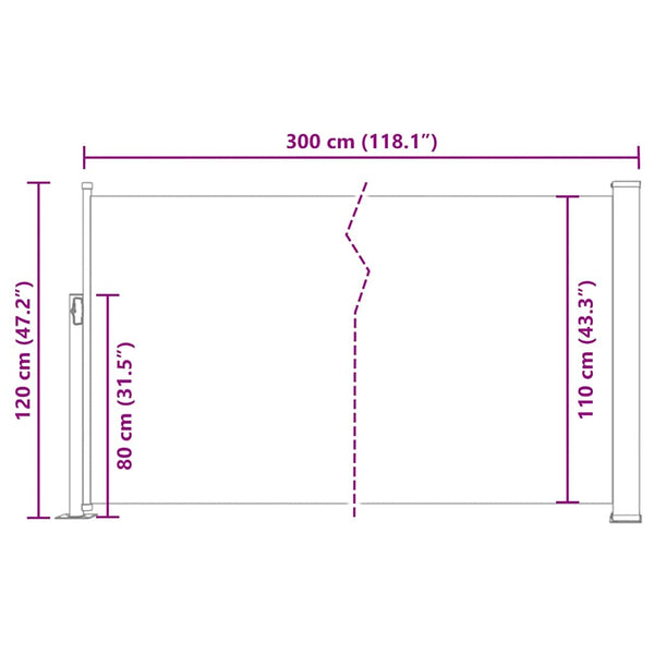 Harmaa sisäänvedettävä sivumarkiisi 120x300cm