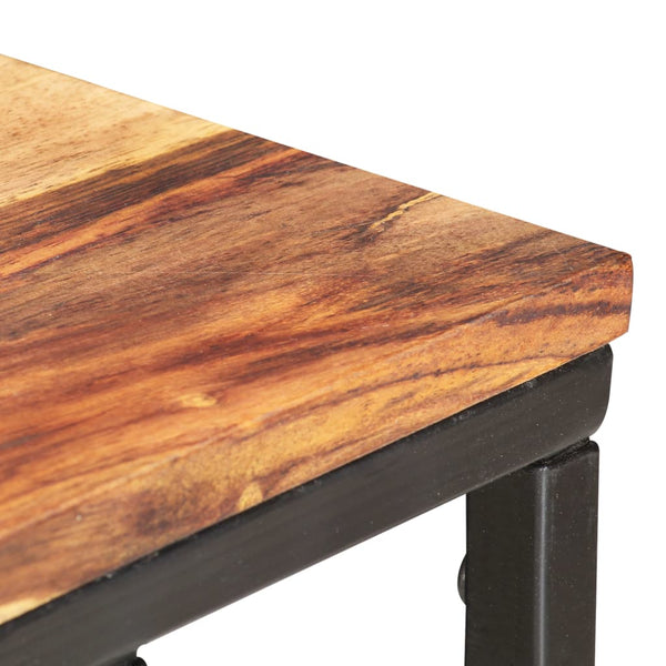 Tämä sivupöytä on valmistettu luonnollisesti viimeistellystä massiivipuusta, joka tekee siitä vakaan ja turvallisen alustan juomille, hedelmäkulhoilla ja koriste-esineille. Jauhemaalattu teräsrunko tuo lisänsä pöydän rakenteen vankkuuteen. Erinomainen käsityötaito ja puun kuviot tekevät jokaisesta huonekalusta erottuvan ja hieman erilaisen kuin seuraavasta. Jokainen valmistusprosessin vaihe on suoritettu erityistä huolta noudattamalla, oli kyseessä sitten kiillotus, maalaaminen tai lakkaus. Pöytä on helppo koota.
