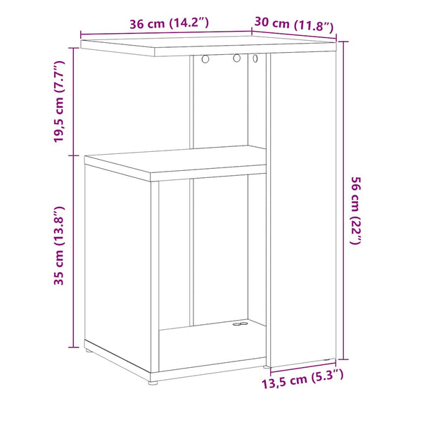 • Runsaasti säilytystilaa: Päätypöytä hyllyllä, joka tarjoaa runsaasti säilytystilaa lehtien, kirjojen, koriste-esineiden ja muiden päivittäisten tarvikkeiden pitämiseen järjestyksessä ja käden ulottuvilla.