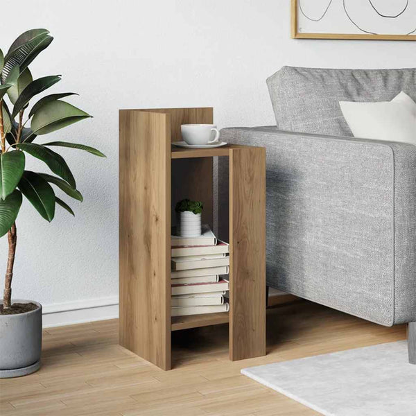 - Runsaasti säilytystilaa: Sivupöydässä on runsaasti säilytystilaa avoimilla hyllyillä, joiden avulla voit järjestää ja näyttää esineitä, kuten kirjoja, lehtiä tai koriste-esineitä, pitäen olohuoneesi sotkuttomana.