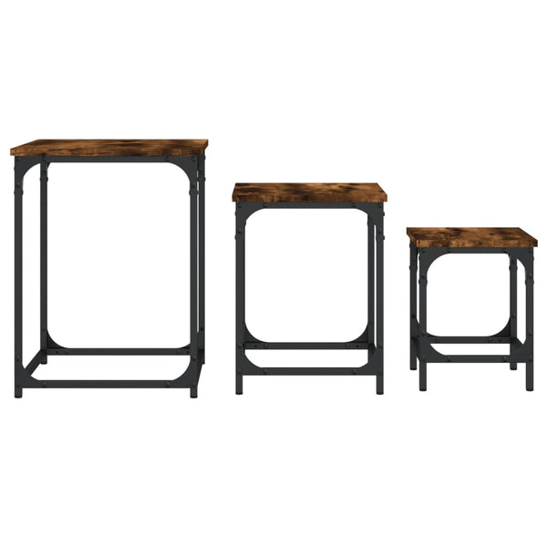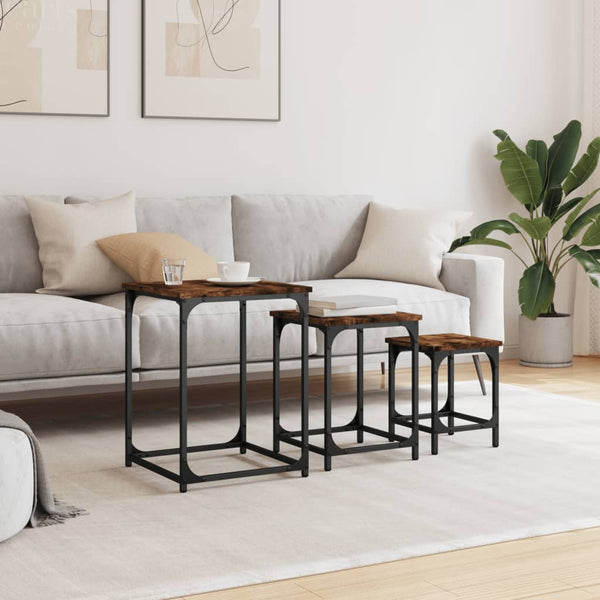 Nämä kolme sarjapöytää ovat täydellinen vaihtoehto pieniin asuntoihin tai mihin tahansa, missä on rajoitetusti tilaa. Niiden teollinen muotoilu tekee tästä sohvapöytäsarjasta tyylikkään lisän olohuoneeseesi, makuuhuoneeseesi tai toimistoosi.