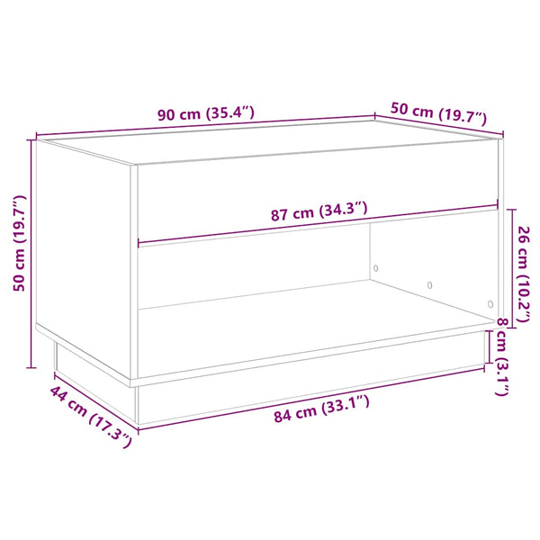 Sonoma-tammi sohvapöytä infinity led-valoilla 90x50x50cm