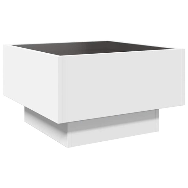 Valkoinen sohvapöytä led-valoilla 50x50x30cm puinen