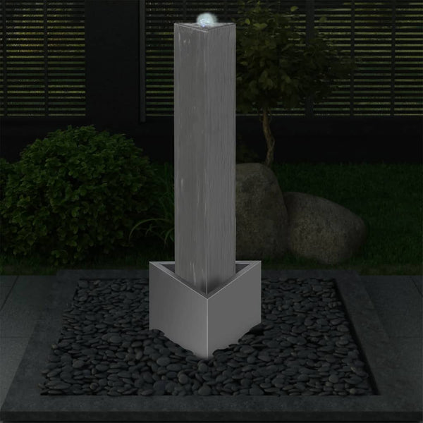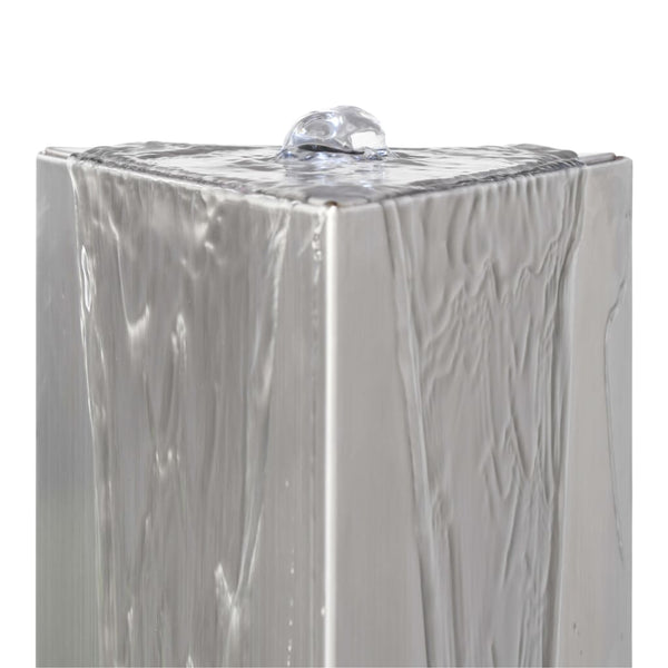 Ruostumattomasta teräksestä valmistetussa kolmionmallisessa puutarhan suihkulähteessämme on LED-valo vesiputouksen päällä ja pumppu. Se muuttaa puutarhasi tai terassisi paikaksi, jossa voit rentouttaa silmiäsi ja korviasi.