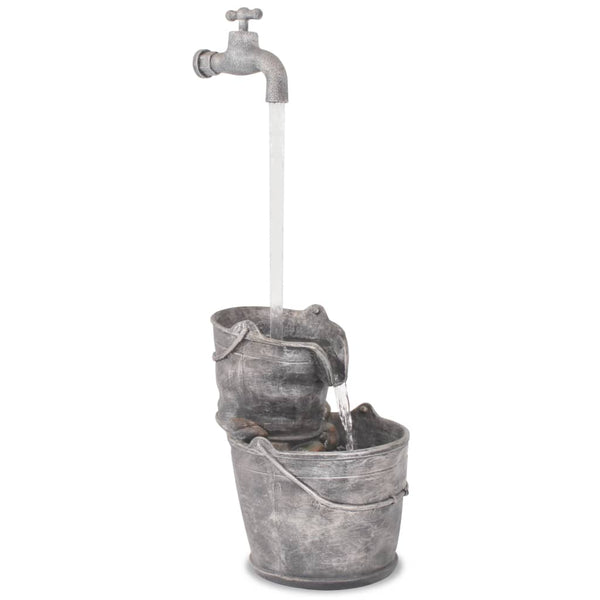 Tämä ainutlaatuinen omavarainen vesikoriste on eriskummallisesti suunniteltu näyttämään siltä, että juokseva hana täyttää kahta antiikkityylistä sankoa. Se on erinomainen koriste sisätiloihisi!