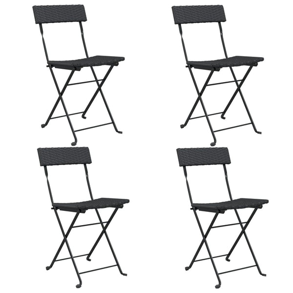 Musta taitettavat bistrotuolit 4 kpl polyrottinki ja teräs