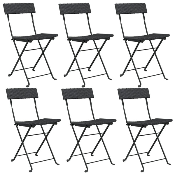 Musta taitettavat bistrotuolit 6 kpl polyrottinki ja teräs