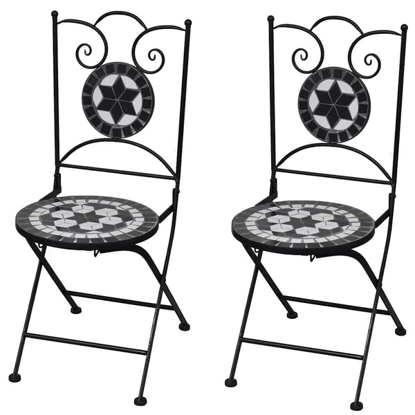 Musta & valkoinen taitettavat ulkotuolit 2 kpl keramiikka