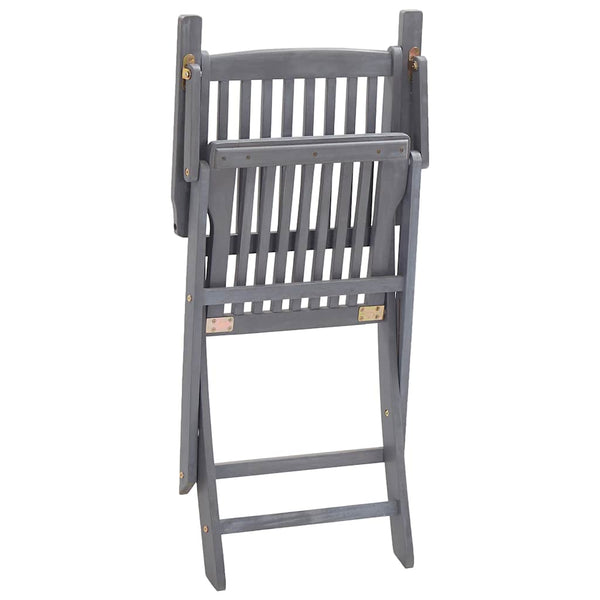 Nämä ruokatuolit on valmistettu laadukkaasta akaasiapuusta, joka on säänkestävä ja pitkäikäinen trooppinen kovapuu. Harmaapesty pinta on helppo puhdistaa kostealla liinalla. Tuolit voidaan taittaa kokoon tilan säästämiseksi, kun niitä ei käytetä. Tuolit on helppo koota.