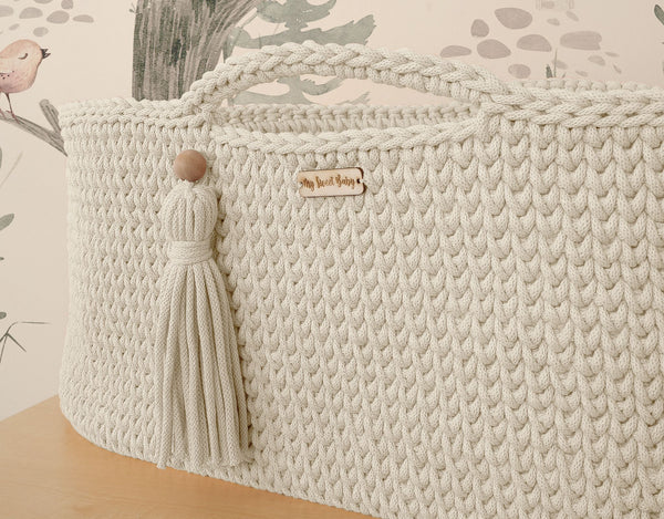 Ihana moses-kori boho-tyylillä on täydellinen valinta vauvan huoneeseen. Tämä käsintehty kori on valmistettu rakkaudella ja siinä yhdistyvät kauneus ja käytännöllisyys. Virkattu 100 % puuvillasta, tämä kehto on erittäin vakaa ja kestävä. Sen pohja on valmistettu vankasta 6 mm vanerista, joten se tarjoaa turvallisen ja mukavan nukkumispaikan vauvallesi. Moses-kori sopii käytettäväksi jopa 5-6 kuukauden ikäiselle vauvalle, kunhan vauvan paino ei ylitä 8 kg. Kätevän kahvan ansiosta voit helposti siirtää korin paikasta toiseen. Mukana tulee moderni antibakteerinen hopeamateriaalista valmistettu