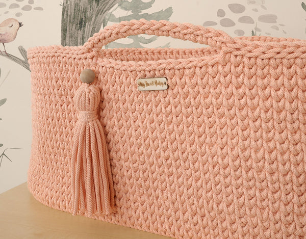 Kaunis boheemi tyylinen Moses-kori, joka on valmistettu 100% käsityönä rakkaudella. Vauvan Moses-korit eivät vain näytä upeilta vauvan huoneessa, vaan ne ovat myös käteviä käyttää päivittäin. Tämä virkattu kehto on täydellinen sänky pienokaisellesi. Se on virkattu 100% puuvillasta. Sivut ovat erittäin tukevat, ja pohja on valmistettu vankasta 6 mm vanerista. Virkatun vauvan kehdon voi käyttää vauvalle noin 5-6 kuukauden ikään asti (riippuen vauvan koosta) ja enintään 8 kg painoon asti. Kädensijassa on käsintehty harja, joka sopii korin väriin ja siinä on puuhelmi. Mukana tulee myös moderni antibakteerinen hopeamateriaalista valmistettu patja. Hopea-ionien kanssa päällystetty päällinen on erinomaisen hygieeninen ja edistää terveyttä. Hopea-ionit tarjoavat suojaa bakteereilta, pölypunkkeilta ja mikro-organismeilta. Päällinen kiinnitetään piilovetoketjulla ja se voidaan irrottaa pesua varten. Hopeapäällinen säilyttää terveysominaisuutensa jopa useiden pesujen jälkeen, joten sitä voi raikastaa tarvittaessa. Tämä huippuluokan patja on valmistettu 4 cm paksusta joustavasta vaahtomuovista. Mitat:• kehdon pituus - 75 cm• kehdon leveys - 35 cm• kehdon syvyys - 25 cm• puukehdon paksuus - 6 mm• patjan paksuus - 4 cmHuomio! Käsityönä valmistettuna sallitaan +/- 2 cm:n toleranssi. Tämä täydellinen puuvillavirkattu kehto kahvoilla on saatavilla monissa eri väreissä. Huomioi, että värit voivat hieman vaihdella eri näyttöjen ja valaistuksen vuoksi. HOITO-OHJEET: pestävä käsin. Huomio! Älä käytä kehtoa, kun lapsesi pystyy seisomaan, polvistumaan tai nousemaan ylös itse. Varoitus! - Älä jätä lastasi valvomatta käyttäessäsi tätä tuotetta. Varoitus! - Pidä poissa tulen läheisyydestä. Varoitus! - Älä käytä, kun lapsesi pystyy kääntymään ympäri. Varoitus! - Älä jätä lastasi valvomatta käyttäessäsi tätä tuotetta.
