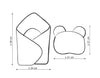 Tämä tuote on 100% käsintehtyä laatua Puolasta. Se on valmistettu kestävästä 100% sertifioidusta puuvillasta, jossa on pyöristetyt reunat ja ylimääräinen vahvikeompele. Kapalokäärö suljetaan edestä. Settiin kuuluu myös pyöreä tyyny, jossa on korvat ja se on muotoiltu nallekarhun pään muotoon. Tämä on todella suloinen setti upeaan nukkeleikkiin!
