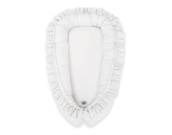 Vauvan pesä Premium Cocoon on täydellinen ratkaisu vastasyntyneiden ensimmäisiin kuukausiin. Tämä kaksipuolinen vauvan pesä on valmistettu korkealaatuisesta Okotex-sertifioidusta puuvillakankaasta, ja täyte on myös Okotex-sertifioitu ilman optisia kirkasteita. Pesä on kuin pieni pesäke nukkumista varten, se on pienempi ja kotoisampi kuin pinnasänky, ja vauva tuntee olonsa turvalliseksi siinä kuin äidin kohdussa. Pesä rajoittaa tilaa vauvan ympärillä, jotta hän voi vähitellen siirtyä sikiöasennosta pystyasentoon.