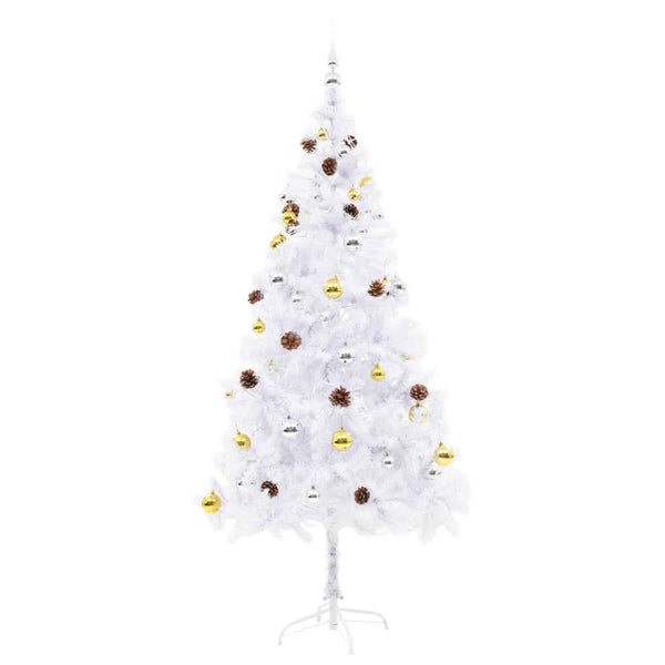 Valkoinen tekojoulukuusi esivalaistu koristepalloilla 180cm