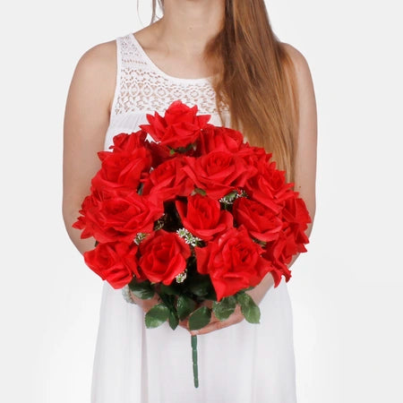 Punaiset ruusut kukkakimppu tekokukat 24kpl