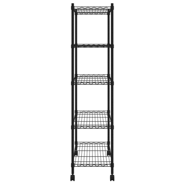 Mustaksi maalatusta raudasta valmistettu varastohylly on erittäin kestävä! Teollisuustyylinen hyllykkö on varustettu neljällä pyörällä siirtämisen helpottamiseksi.