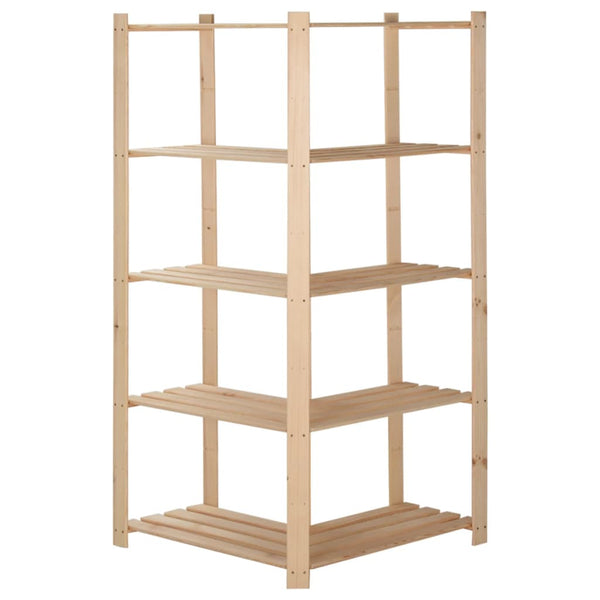 Täydestä männystä valmistettu varastohylly on erittäin vakaa ja kestävä! Voit säilyttää sen luonnollisen värin tai lisätä maalikerroksen tai muun viimeistelyn haluamasi värisenä. 5-kerroksisen suunnittelun ansiosta tämä hylly tarjoaa reilusti tilaa kaikkien tavaroiden järjestyksessä pitämiseen. Tämä puinen teline sopii täydellisesti mihin tahansa nurkkaan.