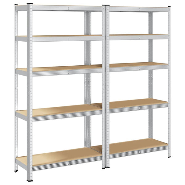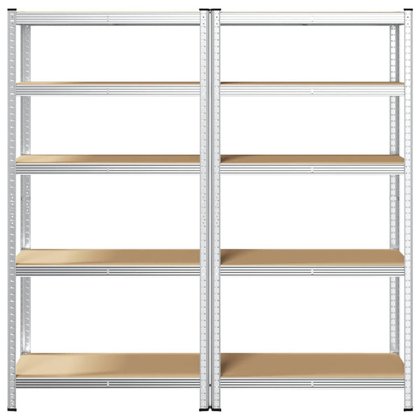 5-kerroksiset säilytyshyllyt 2 kpl hopeaa terästä ja puuta