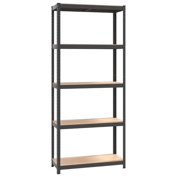 5-tasoinen Varastohylly antrasiitti teräs ja tekninen puu