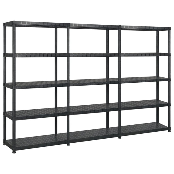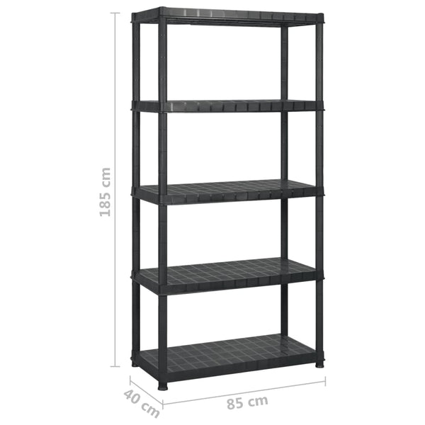 Varastohylly 5-tasoinen musta 255x40x185 cm muovi