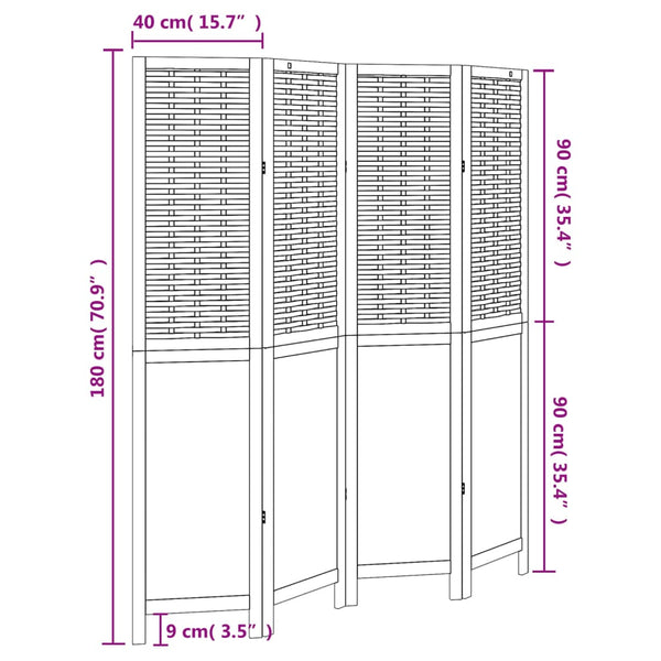 - Joustava ja helppo taittaa: Jokainen osio on yhdistetty toisiinsa kolmella metallisaranalla. Paneelin ylä- ja alaosat on yhdistetty piilotetuilla 2-in-1 saranoilla. Huoneenjakajapaneeli voidaan siis helposti taittaa jossain määrin tarpeidesi mukaan tilan säästämiseksi.