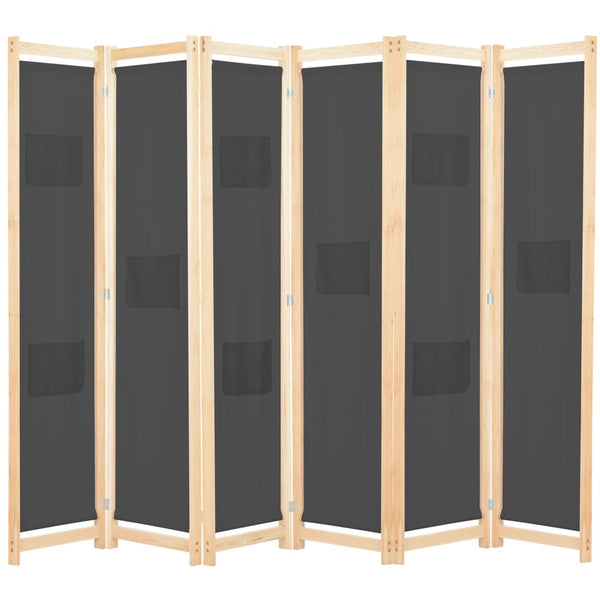 Harmaa tilanjakaja 240x170x4cm 6-paneelinen, kangas