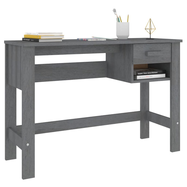 Tämä kirjoituspöytä on valmistettu täydestä männystä, joka tekee siitä vakaan ja tukevan. Tietokonepöydässä on vetolaatikko ja avoin lokero, joissa voit säilyttää asiakirjoja ja muita kotitoimiston tärkeitä tarvikkeita järjestyksessä ja helposti saatavilla.