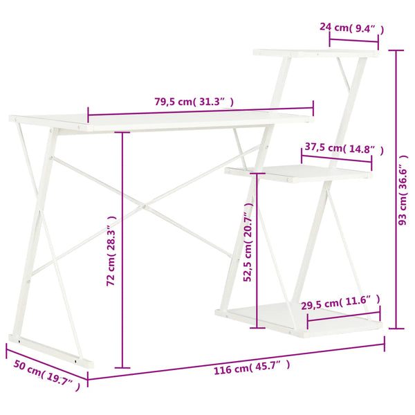 Tämä ainutlaatuinen ja elegantti pöytää sisältää tilavat ja tukevat hyllyt. Suuri pöytälevy sopii täydellisesti pitämään tietokoneesi sekä tarvikkeet, siksi se täydellinen työtaso kirjoittamiseen, toimistotyöhön ja opiskeluun. Sisäänrakennetut hyllyt tarjoavat varastotilan kirjoille, kansioille, dokumenteille tai valokuville, koristeille, ruukkukasveille, jne.