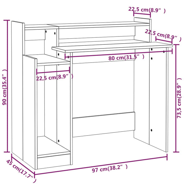Ruskea tammi työpöytä led-valoilla 97x45x90cm puinen