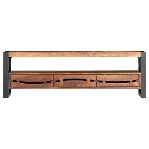 Tämä puinen TV-kaappi on hienostunut sekä tyylikäs ja huokuu klassista viehätysvoimaa ja teollista tyyliä. Se on valmistettu täydestä akaasiapuusta kiinteällä ja teräskehyksellä.