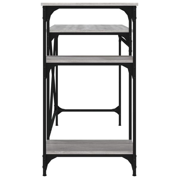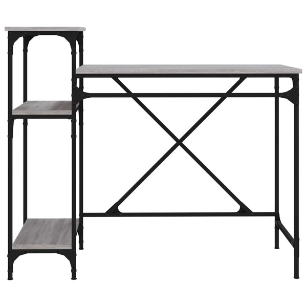 Harmaa työpöytä hyllyillä 105x50x90cm puinen/rauta