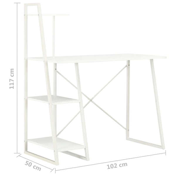 Valkoinen työpöytä hyllyillä 102x50x117cm