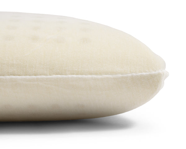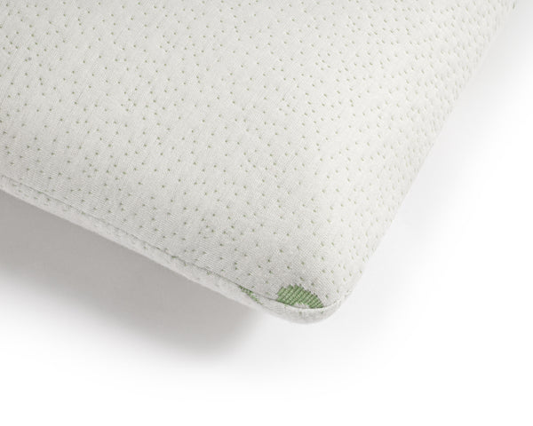 Tämän tyynyn päällinen on valmistettu kaksinkertaisesta jacquard-neuloksesta, jonka paksuus on 240 g/m². Lisäksi siinä on bambukäsittely. Sisäpäällinen on valmistettu 100 % polyesterijerseystä 90 g/m² ja täyte 100 % viskoosista pitkästä vaahtomuovilohkosta.