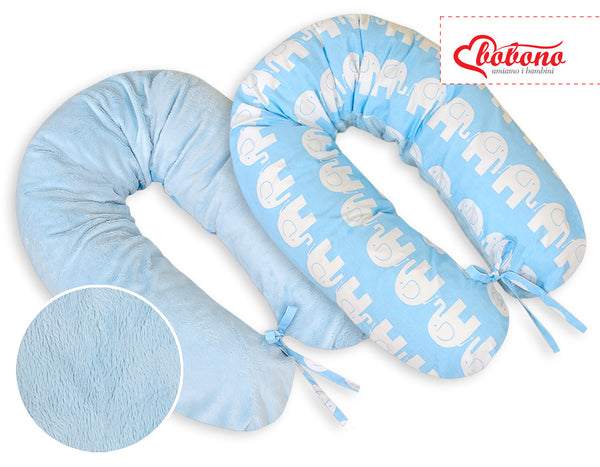 Rentouttava raskaushuopa on täydellinen tuote sekä raskauden aikana että päiväunien aikana. Monikäyttöinen, kaksipuolinen rentouttava huopa - Longer on uusin tuote Bobono-kokoelmassa. Longer-huopa on täydellinen tuote sekä raskauden, imetyksen että päiväunien aikana. Raskauden aikana rentouttava huopa Longer on erinomainen ratkaisu. Raskauden viimeisinä kuukausina vatsa kasvaa ja hankaloittaa mukavaa nukkumisasentoa yöllä tai lepohetkillä. Raskaana ollessa selällään makaaminen voi aiheuttaa epänormaalia verenkiertoa vauvan kehoon, mutta rentouttava huopa Longer pitää sivuasentosi luotettavasti paikoillaan nukkuessasi. Tyynyä voi asettaa vartalon etu- tai takaosaan sekä yöllä että normaalissa rentoutumisessa. Se on myös hyödyllinen kehon tasapainottamisessa tukemalla jalkoja ja kääntämällä vartaloa. Longer-huopa sopii mukavaan lepäämiseen selinmakuulla jalat kohotettuna tai selän tukemiseen istuessa. Imetyksen aikana rentouttava huopa Longer mahdollistaa vakaan ja mukavan asennon sekä sinulle että vauvalle, riippumatta siitä, ruokitko lasta istuen vai makuulla. Longer antaa äidille mahdollisuuden ruokkia vapaasti, koska se lievittää merkittävästi käsien, niskan, hartioiden ja selän kuormitusta. Rentouttavaa huopaa voi myös käyttää vauvan "pesänä" ja auttaa heitä ensimmäisissä istumisyrityksissä. Tyynyn sisällä oleva täyte on Eco Fillball -todistettu silikonipallojen "keinotekoista untuvaa" tyynyjen täytteeksi - täyte varmistaa vauvan oikean asettumisen ja ilmanvaihdon. Tyynyn pituus (170 cm) takaa mukavan asennon sekä äidille että vauvalle sekä ruokinnan että lepohetkien aikana. Vain alkuperäisessä rentouttavassa huopassa Longer on vetoketjullinen päällinen, joka on helppo irrottaa.