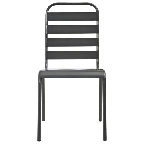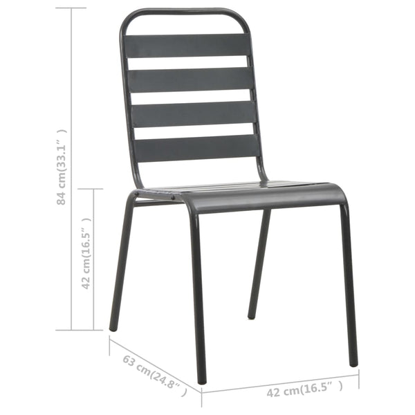 Näissä pinottavissa ruokatuoleissa on sälemuotoilu, joka tuo teollista tyyliä terassillesi, puutarhaasi tai ruokailutilaasi.