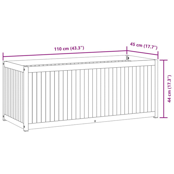 Ulkokukkalaatikko 110x45x44cm akasiapuu ja teräs