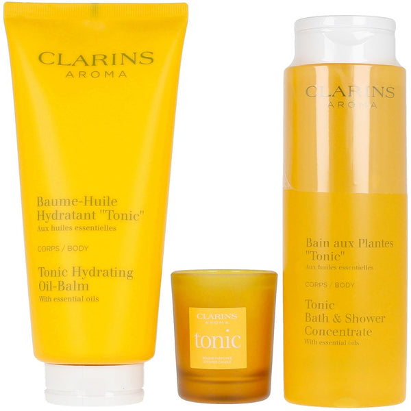 Clarins Aroma Ritual Lot 3 kpl on ylellinen ihonhoitosetti, joka sisältää kolme aromaterapeuttista tuotetta. Pakkaus tarjoaa täydellisen kokonaisuuden vartalonhoitoon, joka hemmottelee sekä kehoa että mieltä. Sarja sisältää suihkuöljyn, vartalovoiteen ja käsivoiteen, jotka kaikki on rikastettu eteerisillä öljyillä. Tuotteet kosteuttavat ja ravitsevat ihoa tehokkaasti, jättäen sen pehmeäksi ja hyvinvoivaksi. Setti sopii kaikille ihotyypeille ja on ihanteellinen lahjaidea.
