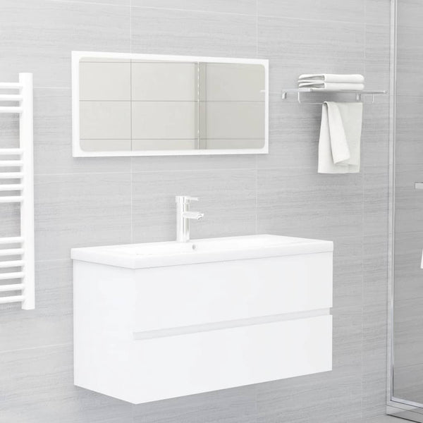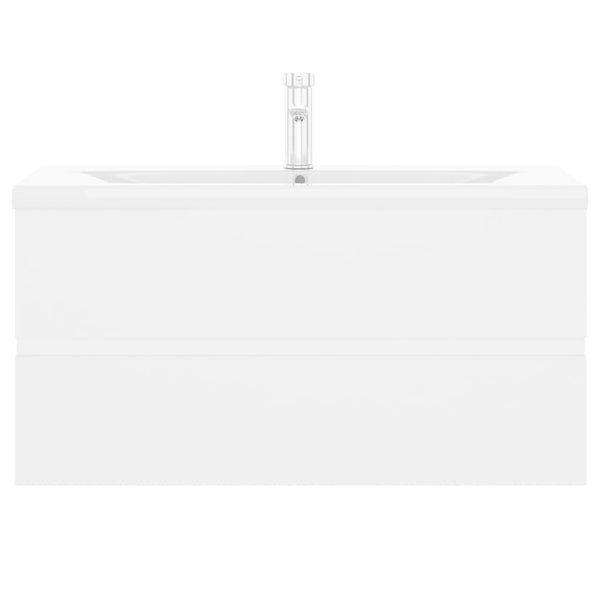 Valkoinen allaskaappi sisäänrakennetulla altaalla lastulevy