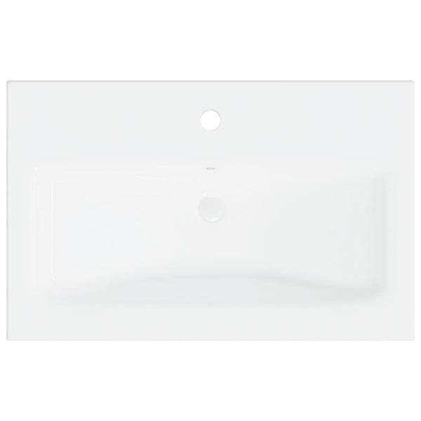 Tukeva ja vakaa kaappi on valmistettu teknisestä puusta. Kaapissa on yksi vetolaatikko, joka tarjoaa runsaasti tilaa tavaroiden säilyttämiseen kylpyhuoneessasi. Se sopii täydellisesti altaan alle ja tekee kylpyhuoneessa säilyttämisestä kätevää. Keraaminen pesuallas ei ole ainoastaan käytännöllinen tarvike päivittäiseen käyttöön, vaan se on samalla myös koriste asuintiloihisi. Nykyaikaisen ja edistyksellisen muotoilunsa ansiosta pesuallas sopii varmasti mihin tahansa sisustustyyliin. Se on varustettu ylivuotoreiällä, josta liika vesi pääsee valumaan pois, jos allas täyttyy liikaa. Sen lasitettu pinta antaa sille modernin ja elegantin ulkonäön. Kaappi ja allas on helppo puhdistaa kostealla liinalla.