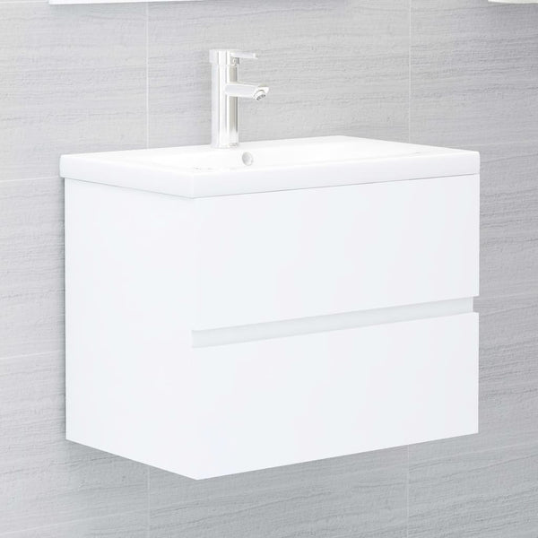 Valkoinen allaskaappi sisäänrakennetulla altaalla lastulevy