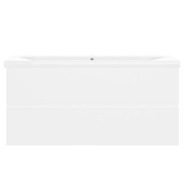 Valkoinen allaskaappi sisäänrakennetulla altaalla lastulevy