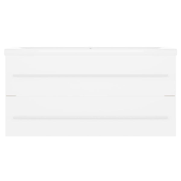 Valkoinen allaskaappi sisäänrakennetulla altaalla lastulevy