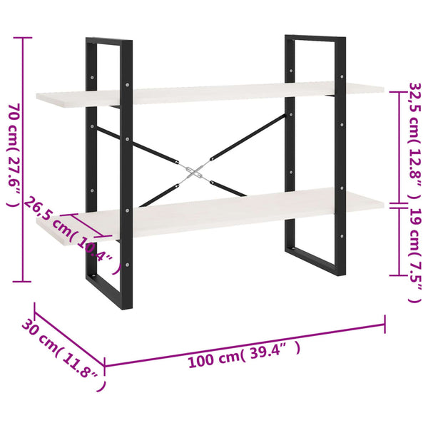 Valkoinen kirjahylly 100x30x70cm 2-tasoinen, mänty